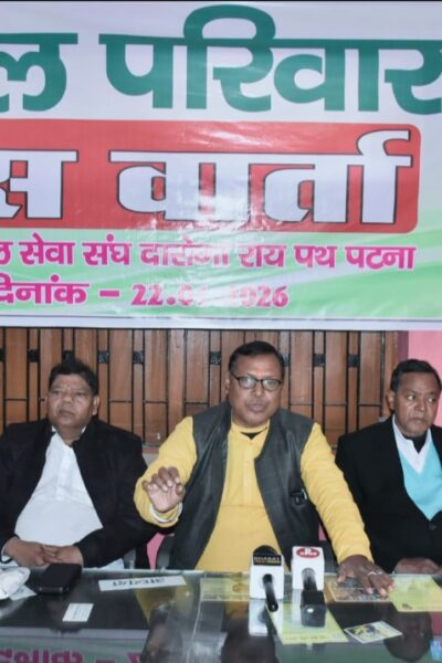 पटना: पूर्व केन्द्रीय मंत्रीआरसीपी सिंह की जदयू में वापसी कराने के मुद्दे को लेकर पटेल समाज एकजुट हो गया है। पटेल समाज से जुड़े कई संगठनों ने इस मुद्दे को लेकर मुख्यमंत्री से मिलने व आंदोलन करने की बात कही है। पटेल समाज कई संगठनों को मिलकर बने पटेल परिवार की ओर से आयोजित प्रेस […]