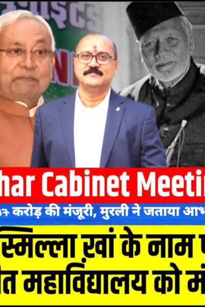 -Shailendra Raju Dumraon (Buxar):In a significant step towards preserving India’s rich classical music heritage, a Bismillah Khan Music College is set to be established in Dumraon, the birthplace of the legendary shehnai maestro Ustad Bismillah Khan, in Buxar district. The proposed institution aims to promote Indian classical music and provide structured training to young talents […]