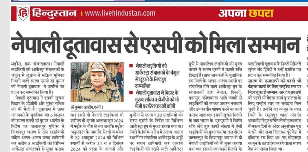 डॉ. अहमद ने कहा कि छपरा के एसपी के रूप में मई 2024 में कार्यभार संभालने के बाद डॉ. आशीष ने रसूलपुर थाना क्षेत्र के तिहरे हत्याकांड में सिर्फ 50 दिनों के भीतर बीएनएस कानून के तहत दोषियों को सजा दिलाई। यह अपने आप में देश का पहला उदाहरण था। केंद्रीय नेतृत्व ने इस मॉडल को पूरे देश में लागू करने की अनुशंसा की थी।
