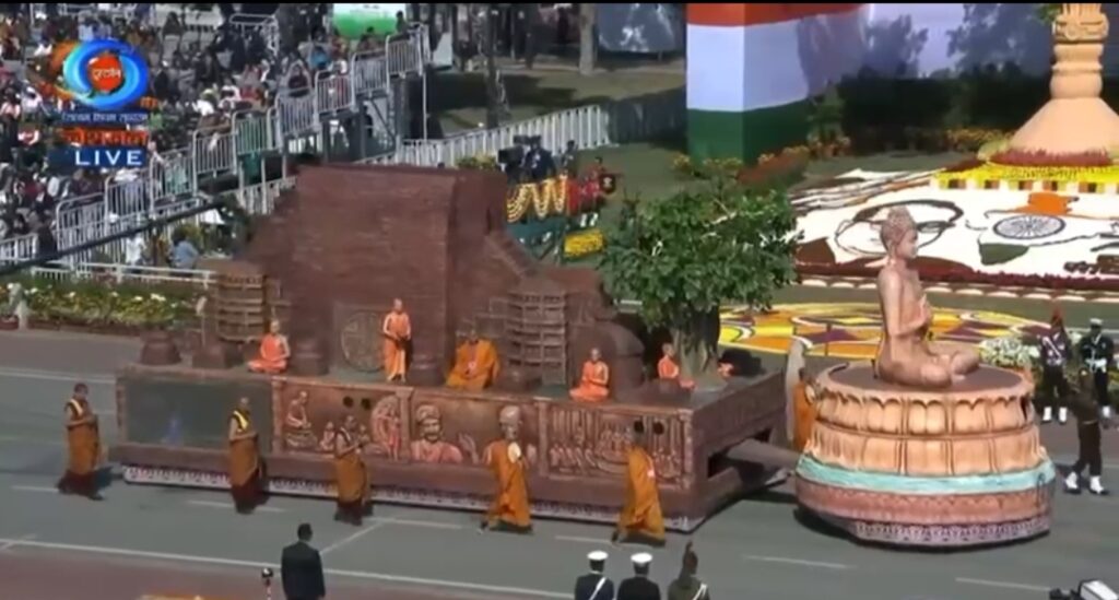 यह है बिहार की झांकी ।बिहार की झांकी राज्य की ज्ञान और शांति की समृद्ध परंपरा का जश्न मना रही है। प्राचीन काल से बिहार ज्ञान की भूमि रही है। झाँकी में भगवान बुद्ध को ध्यानमग्न धर्म चक्र मुद्रा में और पवित्र बोधि वृक्ष के साथ-साथ नालंदा विश्वविद्यालय के खंडहर भी दिखाए गए हैं। माननीय प्रधान मंत्री द्वारा नए अंतर्राष्ट्रीय नालंदा विश्वविद्यालय के उद्घाटन के साथ, बिहार वैश्विक स्तर पर ज्ञान के केंद्र के रूप में खुद को पुनः स्थापित कर रहा है।