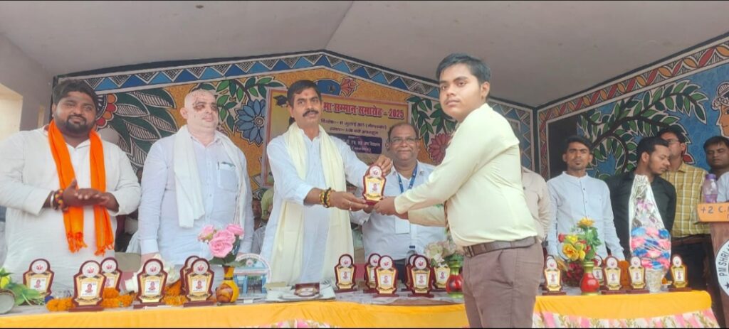 समारोह में 10वीं कक्षा में सर्वश्रेष्ठ अंक लाने वाले अमन राज, विकास कुमार, हिमांशु कुमार, प्रिंस कुमार गुप्ता, प्रशांत कुमार मिश्रा, सत्यम कुमार पांडे, विष्णु कुमार, रमेंद्र राय, अंबिकेश पाठक, राज रोशन कुमार, रितेश कुमार, नितीश कुमार और छोटू यादव सहित कई अन्य मेधावी छात्र-छात्राओं को प्रशस्ति पत्र, मेडल और स्मृति चिह्न देकर सम्मानित किया गया। मुख्य अतिथि जीवन कुमार ने अपने संबोधन में छात्रों को कड़ी मेहनत और अनुशासन को जीवन की सफलता की कुंजी बताते हुए कहा कि शिक्षा ही समाज को आगे ले जाने का सबसे सशक्त माध्यम है। उन्होंने कहा कि ग्रामीण क्षेत्रों में प्रतिभाओं की कमी नहीं है, जरूरत है तो उन्हें उचित मंच और प्रोत्साहन देने की।