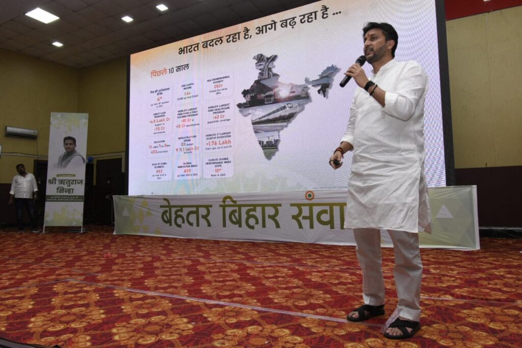 बिहार के औरंगाबाद स्थित नगर भवन में मंगलवार को आयोजित “बेहतर बिहार संवाद” कार्यक्रम में पहुंचे भाजपा के राष्ट्रीय मंत्री ऋतुराज सिन्हा ने बिहार के युवाओं को प्रदेश के विकास की धारा में निर्णायक भूमिका निभाने का आह्वान किया है. औरंगाबाद के सच्चिदानंद सिन्हा महाविद्यालय के तत्वावधान में आयोजित “बेहतर बिहार संवाद” में युवाओं से सीधा संवाद करते हुए ऋतुराज सिन्हा ने कहा कि भारत को वर्ष 2047 तक एक विकसित राष्ट्र के रूप में स्थापित करने का लक्ष्य निर्धारित किया गया है और यह कार्य तब तक संभव नहीं है जब तक बिहार इसमें अग्रणी भूमिका न निभाए. उन्होंने कहा कि बिहार की विशाल युवा आबादी इस परिवर्तन की धुरी बन सकती है लेकिन इसके लिए सबसे पहले युवाओं को अपने सोच और दृष्टिकोण को बदलना होगा. उन्होंने कहा कि लोगों के मन में बिहार को लेकर नकारात्मक सोच बनी हुई है, जिसे समाप्त करना आवश्यक है.कोई भी व्यक्ति अपने परिवार को कोसकर प्रगति नहीं कर सकता. ठीक उसी प्रकार बिहार को दोष देकर आगे नहीं बढ़ा जा सकता. युवाओं को स्पष्ट एजेंडा के साथ आगे आकर नेतृत्व संभालना होगा.