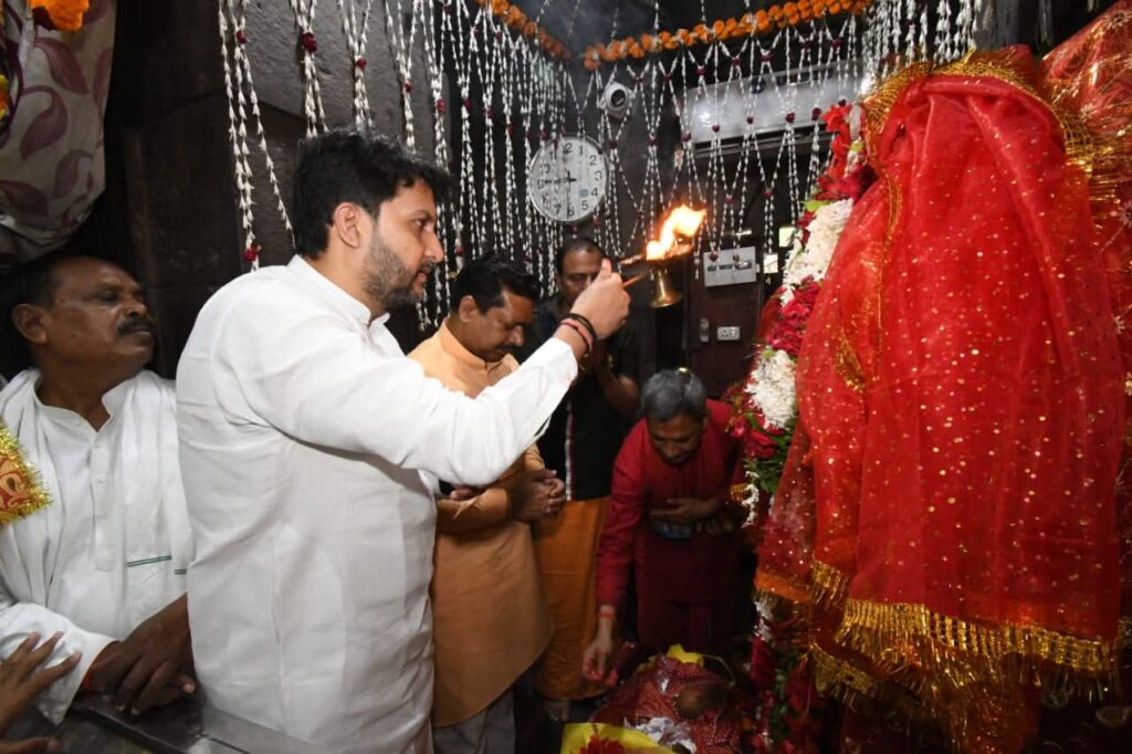 भाजपा के संगठनात्मक बैठकों में भाग लेने और आगामी विधानसभा चुनाव में कार्यकर्ताओं को एनडीए की शानदार जीत का मुलमंत्र देने कैमूर पहुंचे भाजपा के राष्ट्रीय मंत्री ऋतुराज सिन्हा ने कैमूर की पवरा पहाड़ी पर स्थित विश्व के सबसे प्राचीन मंदिर माँ मुंडेश्वरी मंदिर का दर्शन किया. इस दौरान उन्होने माँ मुंडेश्वरी की पूजा, अर्चना की और माता की आरती उतारी. उन्होने माँ मुंडेश्वरी को चुनरी और माला पहना कर आशीर्वाद लिया.राष्ट्रीय मंत्री ऋतुराज सिन्हा के साथ भाजपा के प्रदेश महामंत्री और क्षेत्रीय प्रभारी राजेश वर्मा ने भी माँ मुंडेश्वरी का दर्शन कर पूजा अर्चना की और आशीर्वाद प्राप्त किया. माँ मुंडेश्वरी का दर्शन कर पूजा अर्चना करने पहुंचे भाजपा के राष्ट्रीय मंत्री ऋतुराज सिन्हा के साथ साथ भाजपा क्रीड़ा प्रकोष्ठ के प्रदेश संयोजक सतीश कुमार श्रीवास्तव उर्फ सतीश राजू भी मौजूद थे. उन्होंने भी माँ मुंडेश्वरी की पूजा अर्चना की.