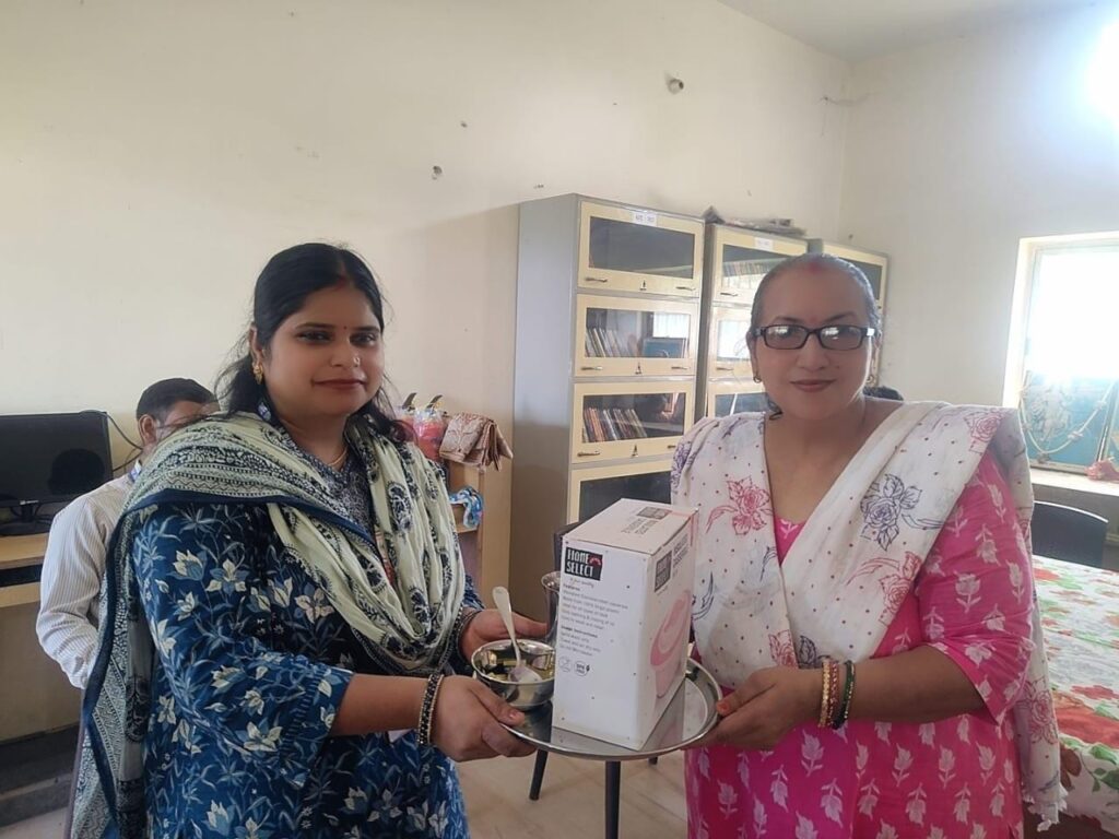 बाद में प्राचार्या श्रीमती बंदना सिन्हा ने अपनी ओर से सभी शिक्षकों, कर्मियों और स्टाफ को आकर्षक उपहार भेंट किये.