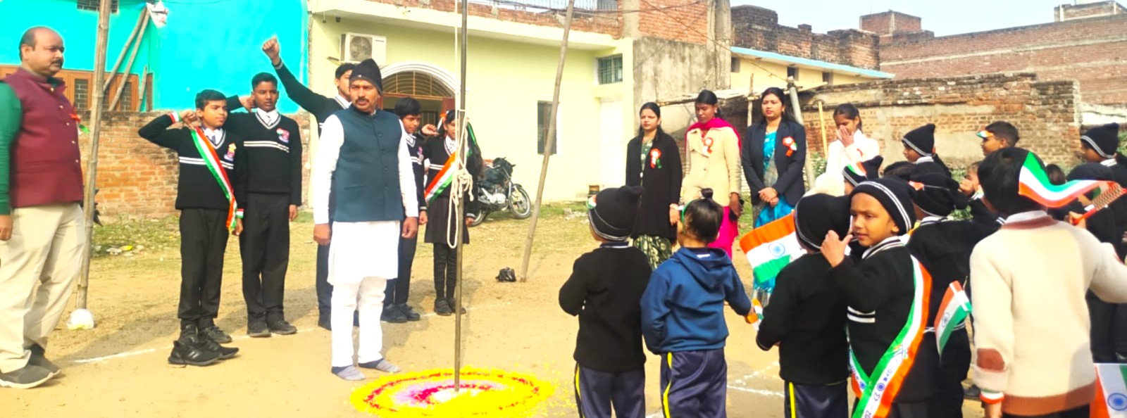 Dumraon : With enthusiasm children and teachers celebrated 77th Republic Day today in the premises of Generation Beta School here. The children sang national and patriotic songs and delivered short speech on this occasion. Social activist Ramnath Tiwari hoisted the national flag and encouraged children by saying he will extend his support to them.