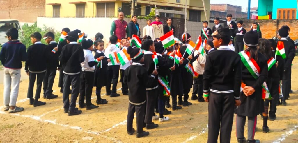 Co-founder and administrator, Priyanka Singh said that India had gained republic in the year 1929 but it’s constitution could not be given a shape but it could be possible on 26 January in 1950 since then our country began celebrating Republic day. ” We should take oath today to always give priority to our nation and do our duty honestly and stay standing ahead for humanity. ” Meanwhile senior advocate and notary Manoj Kumar Srivastava said that he was happy to see the discipline patience and courage among the children. He added happily that many of the children will prove to be good citizens of the country in future.