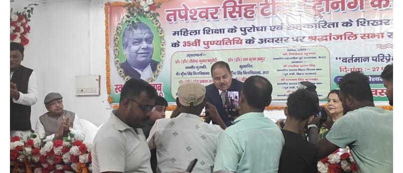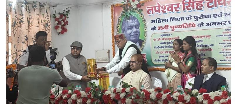 भोजपुर जिले के कायमनगर स्थित तपेश्वर सिंह टीचर्स ट्रेनिंग कॉलेज और संस्कृति पब्लिक स्कूल के भव्य सभागार में शुक्रवार को सहकारिता सम्राट और पूर्व सांसद स्व. तपेश्वर सिंह का पुण्यतिथि समारोह धूम धाम से मनाया गया। तपेश्वर सिंह स्मृति संस्थान के बैनरतले आयोजित इस समारोह का उद्घाटन वीर कुंवर सिंह विश्वविद्यालय के कुलपति प्रो.डॉ. शैलेन्द्र कुमार चतुर्वेदी,पूर्व कुलसचिव प्रो.डॉ.धीरेन्द्र कुमार सिंह,टीचर्स ट्रेनिंग कॉलेज के सचिव पूर्व विधान पार्षद डॉ. अजय कुमार सिंह, प्रख्यात चिकित्सक डॉ. गायत्री सिंह, डॉ. माधुरी सिंह और डॉ. आलोक कुमार सिंह ने संयुक्त रूप से दीप प्रज्ज्वलित कर और स्व. तपेश्वर सिंह के चित्र पर पुष्पांजलि अर्पित कर की।इस अवसर पर आयोजित एक श्रद्धांजलि सभा को बतौर मुख्य अतिथि और केरल एवं नागालैंड के पूर्व राज्यपाल निखिल कुमार ने सम्बोधित किया। उन्होंने कहा कि स्व. तपेश्वर सिंह का व्यक्तित्व वृहद था। उन्होंने राजनीति को जनसेवा का माध्यम बनाया। सहकारिता के क्षेत्र में नए अध्याय की शुरुआत की और देश के किसानों को आर्थिक रूप से सम्पन्न होने और भारत को आर्थिक रूप से विकास की राह पर आगे बढ़ने की ठोस एवं दूरदर्शी पहल की। सहकारिता से पुरे राष्ट्र के किसानों को एक सूत्र में बांधकर उन्हें आगे बढ़ने का अवसर दिया। उन्होंने कहा कि स्व. तपेश्वर सिंह ने आज से कई दशक पहले नारी शिक्षा के महत्व को समझ लिया था और महिला सशक्तिकरण के सपने को साकार करने के लिए जगह जगह महिला महाविद्यालयों की स्थापना की। महिलाओं को उच्च शिक्षा के क्षेत्र में आगे बढ़ने के लिए कई कार्य किये। उन्होंने कहा कि स्व. तपेश्वर सिंह के इन्ही कार्यों को जनता ने पसंद किया और उन्हें सीधे सांसद चुनकर देश की संसद में भेजा। उनके किये गए कार्य को आने वाली कई पीढ़ियां याद रखेंगी। वीर कुंवर सिंह विश्वविद्यालय के कुलपति प्रो. डॉ. शैलेन्द्र कुमार चतुर्वेदी ने सभा के उद्घाटन सत्र को सम्बोधित करते हुए कहा कि स्व. तपेश्वर सिंह बहुआयामी प्रतिभा के धनी व्यक्ति थे। उनकी गिनती महापुरुषो में की जाती है। आज राज्य और केंद्र की सरकार “बेटी बचाओ -बेटी पढ़ाओ” का नारा दे रही है, बेटियों को आगे बढ़ने के लिए कई योजनाएं चला रही है लेकिन स्व. तपेश्वर सिंह ने कई दशक पहले बेटियों को उच्च शिक्षा ग्रहण कर देश के नव निर्माण में अपनी भूमिका तय करने की पृष्ठभूमि तैयार कर दी थी। सभा को सम्बोधित करते हुए वीकेएसयू के पूर्व कुलसचिव प्रो. डॉ. धीरेन्द्र कुमार सिंह ने कहा कि सहकारिता सम्राट स्व. तपेश्वर सिंह ने जनसेवा, राजनीति और समाजसेवा के साथ साथ नारी सशक्तिकरण के क्षेत्र में भी कई कार्य किये और आधी आबादी को देश के विकास में योगदान देने के लिए आगे