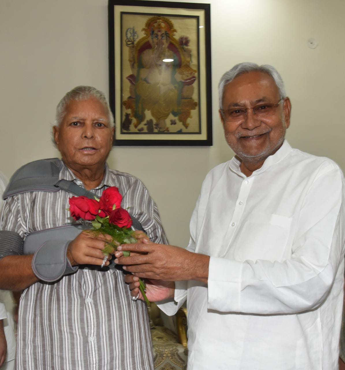 मुख्यमंत्री नीतीश कुमार के साथ जदयू के वरिष्ठ नेता और उनके मंत्रिमंडल के सहयोगी विजय कुमार चौधरी भी मौजूद थे. गौरतलब है कि लालू प्रसाद यादव राबड़ी आवास में सीढ़ी से गिर गये थे. जिसके बाद उनकी हालत गंभीर हो गई थी. उनके बिगड़ते स्वास्थ्य को देखते हुए उन्हें एयर एंबुलेंस के जरिए दिल्ली एम्स में भर्ती कराया गया था. जहां पर इलाज के बाद वह अपनी बेटी मीसा भारती के घर पर स्वास्थ्य लाभ ले रहे थे. उसी दौरान बिहार में एनडीए की सरकार गिर गई और नीतीश कुमार महागठबंधन के साथ मिलकर फिर से सरकार बना लिया.
