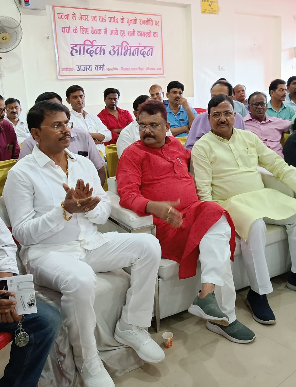 इस मौके पर बैठक को संबोधित करते हुए अजय वर्मा ने सभी से निवेदन करते हुए कहा कि पटना में कायस्थों की सबसे अधिक संख्या है। सभी कायस्थों से मतदान करने की अपील करते हुए कहा कि सभी लोग कायस्थ उम्मीदवार को ही अपना मत देंगे चाहे वो पार्टी समर्थित हों या न हों। इसके अलावे श्री वर्मा ने कहा कि फिल्म थैंक गॉड में हमलोगों के आदि देव भगवान चित्रगुप्त के ऊपर गलत चरित्र चित्रण किया गया है, जिसके खिलाफ कानूनी कार्रवाई की जानी चाहिए। आगे अजय वर्मा ने यह भी कहा कि चित्रगुप्त समाज के द्वारा बिहार के अन्य जिलों से इलाज तथा अन्य कारणों से पटना आने वाले सामान्य कायस्थ बंधुओं के ठहरने के लिए निःशुल्क आवासन की व्यवस्था की जाएगी। चित्रगुप्त समाज में स्थित भगवान चित्रगुप्त मंदिर में 60 ऊंचे गुंबदों के निर्माण की भी उन्होंने जानकारी दी। बैठक का आयोजन एवं अध्यक्षता बिहार-झारखंड चित्रगुप्त समाज के महासचिव अजय वर्मा ने की। जबकि बैठक में पूर्व विधान पार्षद प्रो.रणबीर नंदन, पूर्व सांसद प्रत्याशी बिनोद श्रीवास्तव ने भी समाज के हित में अपनी-अपनी बातों को रखते हुए कायस्थ उम्मीदवारों के पक्ष में मतदान करने की अपील की। जबकि पुष्कर जी, विजय कुमार जी और सुजीत जी ने भी अपनी-अपनी बातों को सबके समक्ष रखी। पटना के सभी कायस्थ संगठन और पूजा समिति के सदस्यों के साथ साथ मेयर प्रत्याशी एवं वार्ड पार्षद प्रत्याशी भी शामिल हुए।