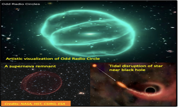 ऑड रेडियो सर्किल के ऊर्जावान तथा अग्रगामीः सितारों के ज्वारीय व्यवधानों के साथ? उमर ए 2022, MNRAS Letters, slac038 (https://doi.org/10.1093/mnrasl/slac038) https://arxiv.org/abs/ 2204.08427