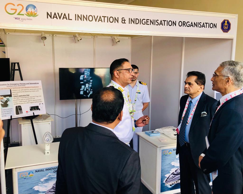 दिल्लीः भारत की जी20 अध्यक्षता के तहत स्टार्टअप20 सहभागिता समूह की प्रारंभिक बैठक के दौरान नौसेना नवाचार और स्वदेशीकरण संगठन (एनआईओओ) ने भारतीय नौसेना अधिकारियों के चिकित्सा नवाचारों का प्रदर्शन किया। ऑक्सीजन पुनर्चक्रण प्रणाली (ओआरएस), ‘आद्यंत’; कम लागत वाले डिजिटल स्टेथोस्कोप, ‘स्पंदन’ और स्मार्ट पोर्टेबल नेब्युलाइज़र, ‘नेबिरो’ सहित विभिन्न चिकित्सा नवाचारों को दिखाया गया।