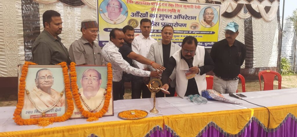 ऐसे में जनसेवा की भावना रखने वाले प्रदीप जायसवाल को धन्यवाद देते हुए कहा कि यह बहुत ही अच्छी बात है कि वे अपने माता शिवकुमारी देवी व पिता जगदीश प्रसाद की स्मृति में इस तरह का आयोजन कर पुनीत कार्य कर रहे हैं।उन्होंने इस तरह की सामाजिक कार्य में प्रशासनिक स्तर पर हर संभव सहयोग करने की भी बात कही।इस दौरान रोटरी जगदीश आई हॉस्पिटल के चेयरमैन प्रदीप जायसवाल ने एसडीएम कुमार पंकज को बुके देकर स्वागत किया साथ ही कहा कि पिछले 29 वर्षों से डुमरांव में मुफ्त मोतियाबिंद का ऑपरेशन शिविर का आयोजन किया जा रहा है। इसकी शुरुआत लायन्स क्लब के माध्यम किया गया था। बाद में खुद रोटरी जगदीश आई हॉस्पिटल के माध्यम यह जारी रखा। जिसमें हजारों निर्धन व्यक्तियों का मुफ्त ऑपरेशन किया जा चुका है अस्पताल में नेत्र जांच ऑपरेशन के लिए अत्याधुनिक मशीन रोटरी फाउंडेशन से मुफ्त प्राप्त है। रोटरी जगदीश आई हॉस्पिटल बक्सर जिले से अंधापन निवारण को लेकर संकल्पित है। मंच का संचालन रोटरी बक्सर के पूर्व अध्यक्ष विनय कुमार सिंह ने किया तथा धन्यवाद ज्ञापन पूर्व अध्यक्ष मोहन प्रसाद गुप्ता ने किया।इस अवसर पर रोटरी जगदीश आई हॉस्पिटल के डॉ अजित कुमार, प्रबन्धक अजित कुमार जायसवाल, कमलेश सिंह,समाजसेवी रमेश केसरी,प्रमोद कुमार, प्रशांत कुमार, दशरथ प्रसाद विद्यार्थी आदि उपस्थित रहे।
