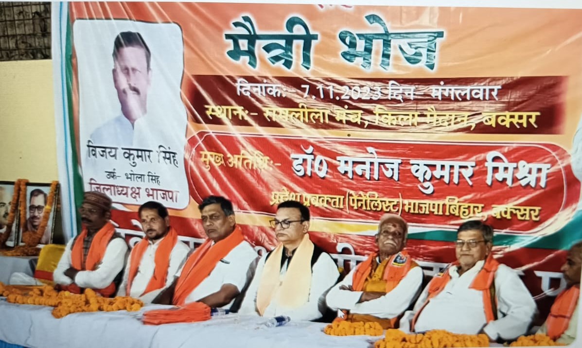 मंगलवार को भारतीय जनता पार्टी बक्सर विधानसभा का कार्यकर्ता सम्मान समारोह सह मैत्री भोज का आयोजन शहर के किला मैदान स्थित रामलीला मंच पर नगर अध्यक्ष अजय वर्मा की अध्यक्षता में सम्पन्न हुआ। जिसमें बतौर मुख्य अतिथि चिकित्सक सह भाजपा बिहार के प्रदेश प्रवक्ता डॉ मनोज मिश्रा उपस्थित रहे।